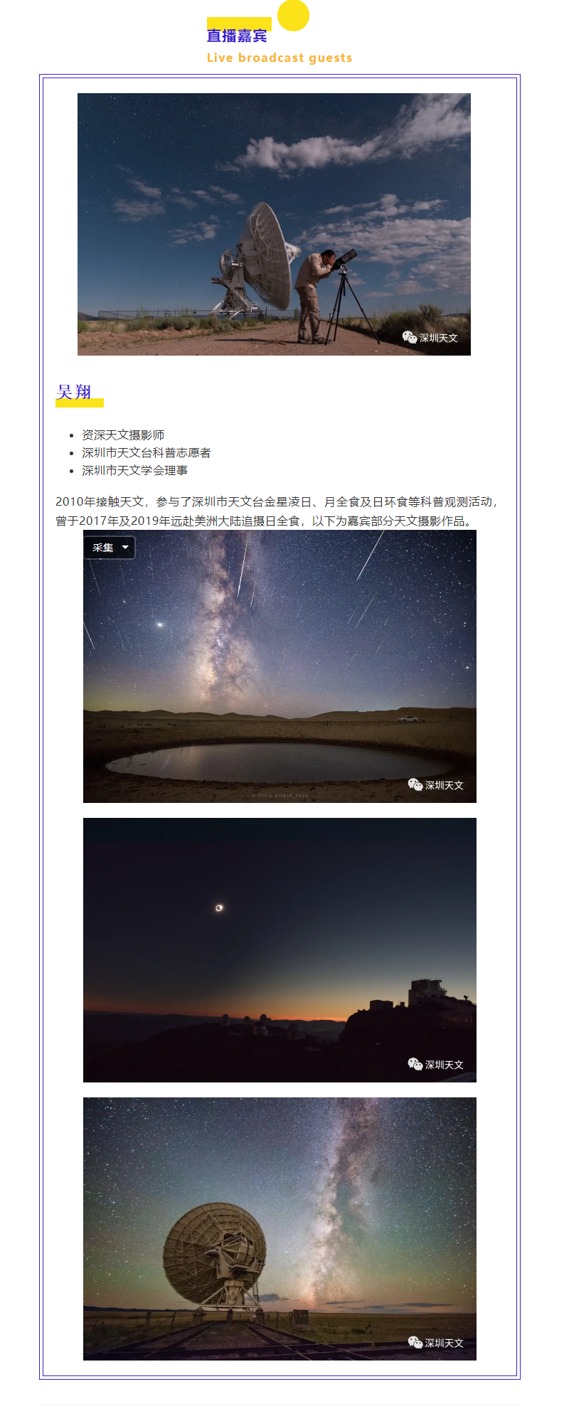 关注微信公众号:【深圳科普】, 发送关键词:云赏星, 按提示可收看直播。