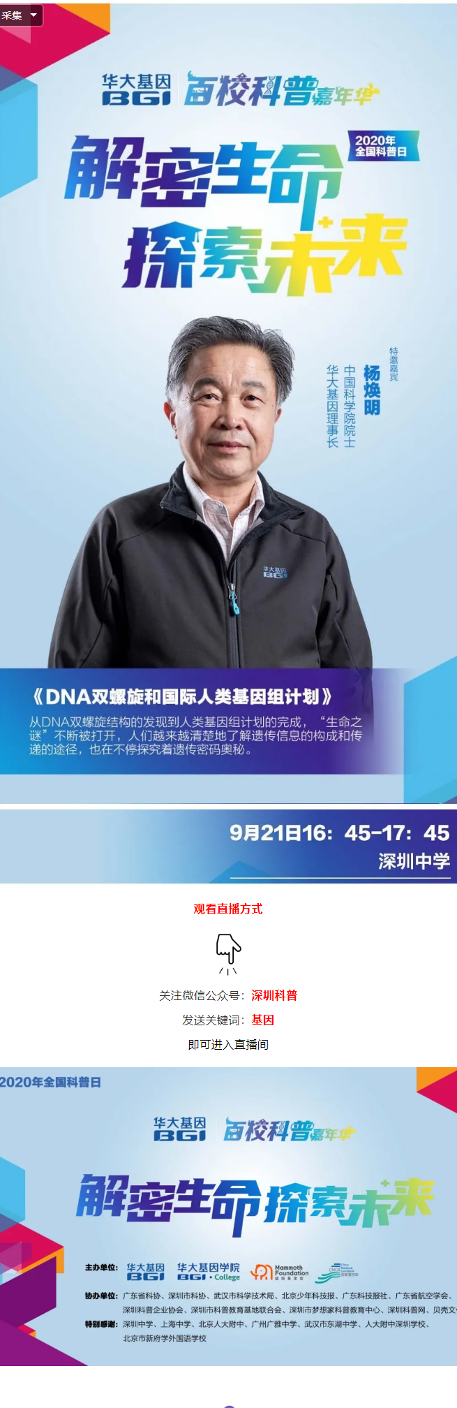 2020全国科普日 | 解密生命 探索未来——华大基因百校科普嘉年华走进深圳中学即将开讲