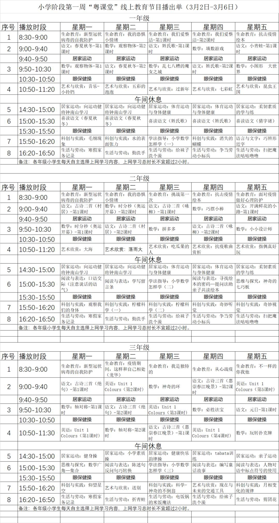 高中一年级第一周“粤课堂”线上教育节目播出单(3月2日-3月6日)