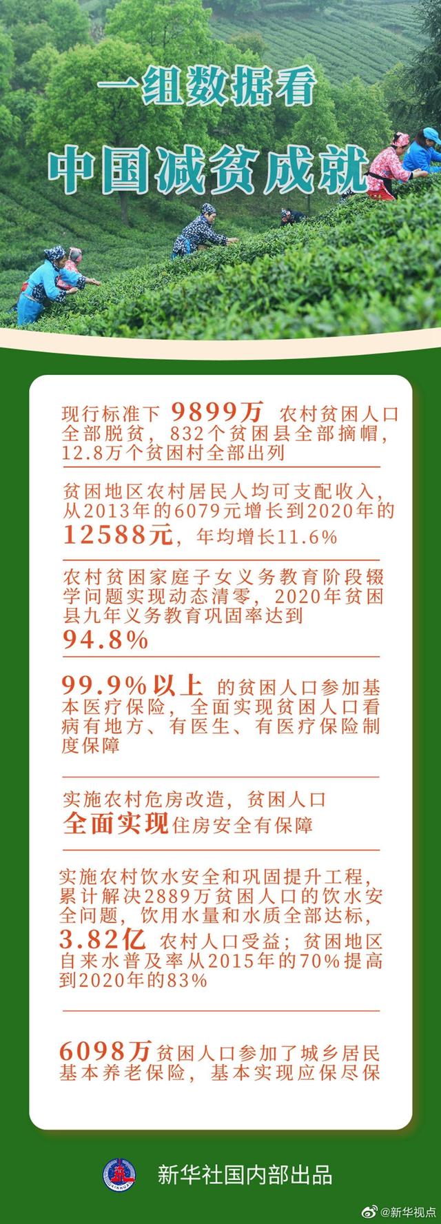 国务院新闻办公室6日发布《人类减贫的中国实践》白皮书说,今年是中国共产党成立100周年。100年来,中国共产党团结带领人民,以坚定不移、顽强不屈的信念和意志与贫困作斗争。中共十八大以来,在以习近平同志为核心的党中央领导下,中国组织实施了人类历史上规模空前、力度最大、惠及人口最多的脱贫攻坚战。经过8年持续奋斗,到2020年底,中国如期完成新时代脱贫攻坚目标任务。一组数据看中国减贫成就↓
