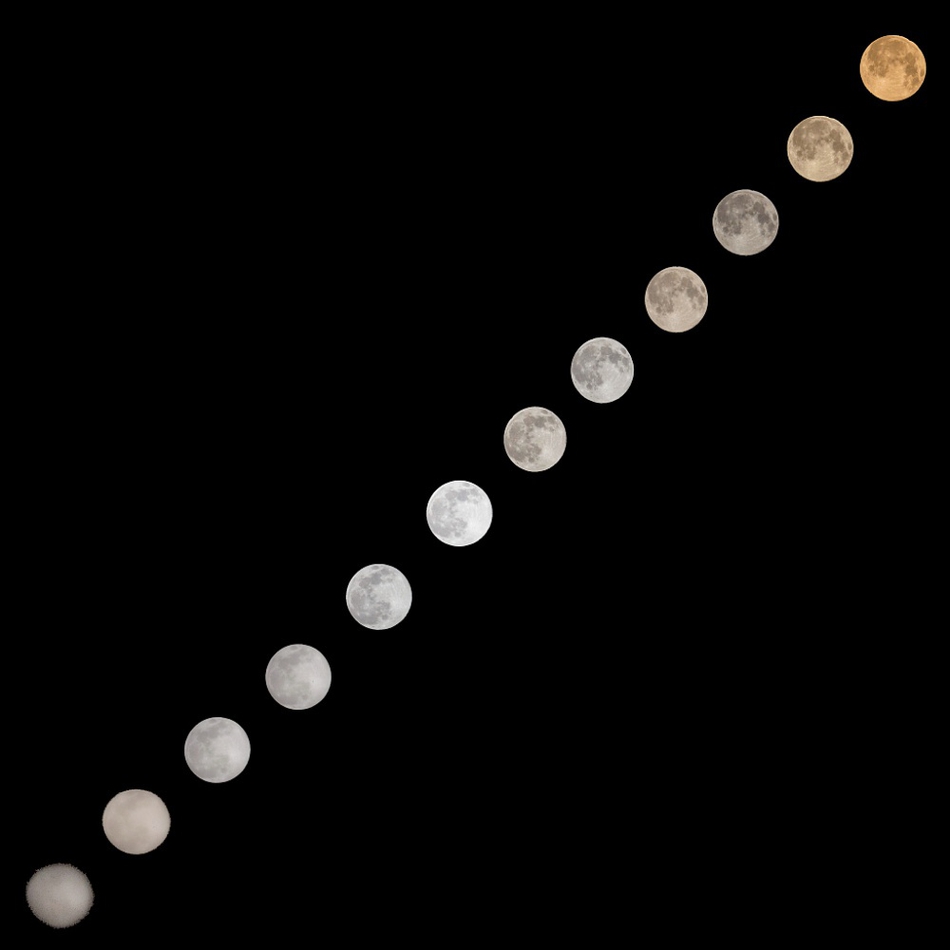 2020年3月10日,河南驻马店,月亮到超级月亮运行轨迹(拼版照片)。