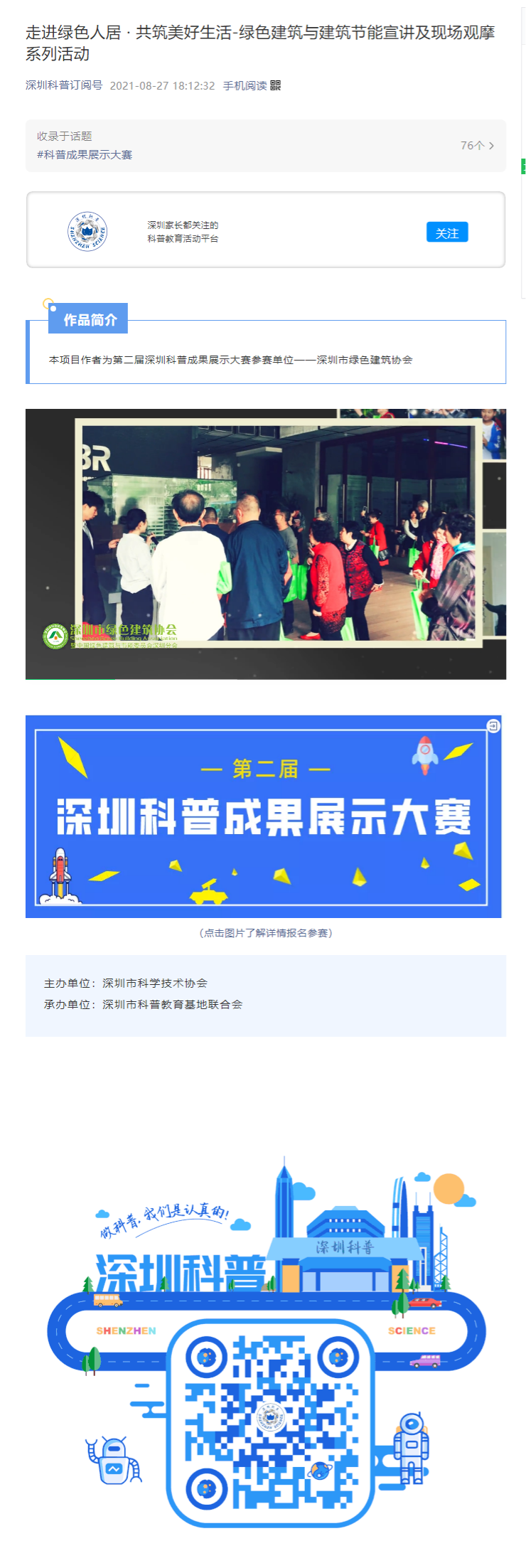 第二届深圳科普成果展示大赛作品:走进绿色人居 · 共筑美好生活-绿色建筑与建筑节能宣讲及现场观摩系列活动