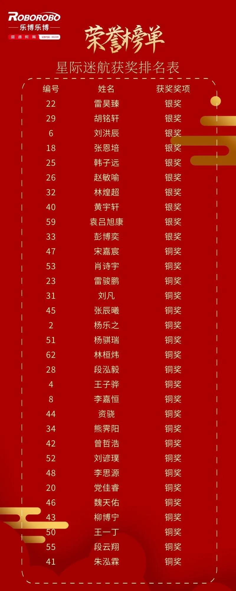 国际青少年机器人创意全能赛-星际迷航排名表