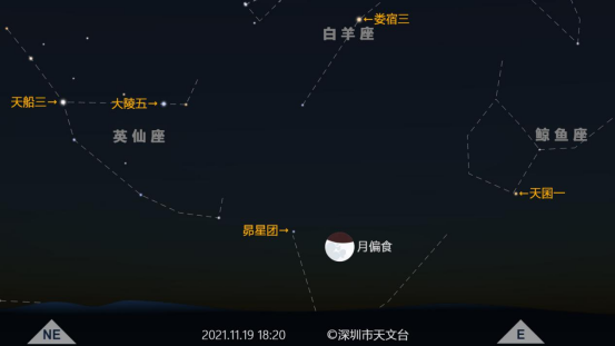 当月亮、地球、太阳三者在宇宙中的位置成一直线,地球的影子将月亮挡住时,就会发生月食,部分挡住时发生月偏食,全部挡住时会发生月全食。11月19日将发生一次月偏食天象,食分高达0.98,是一次很接近全食的偏食。
