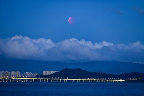 深圳湾大桥上的月食 拍摄:麦淇彬 时间:2021年5月26日