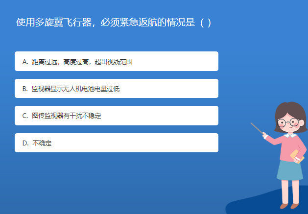 科普基地知识问答:使用多旋翼飞行器,必须紧急返航的情况是( )
