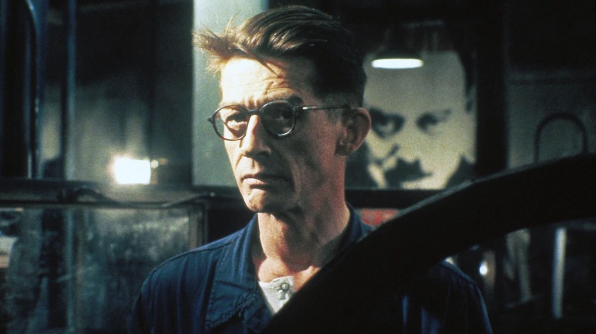 影片中老戏骨约翰·赫特(John Hurt)饰演的男主温斯顿·史密斯(Winston Smith)骨瘦如柴,纤细的脖颈顶着布满皱纹的疲倦脸庞,表情沉默而真诚,简直就是完美的史密斯。