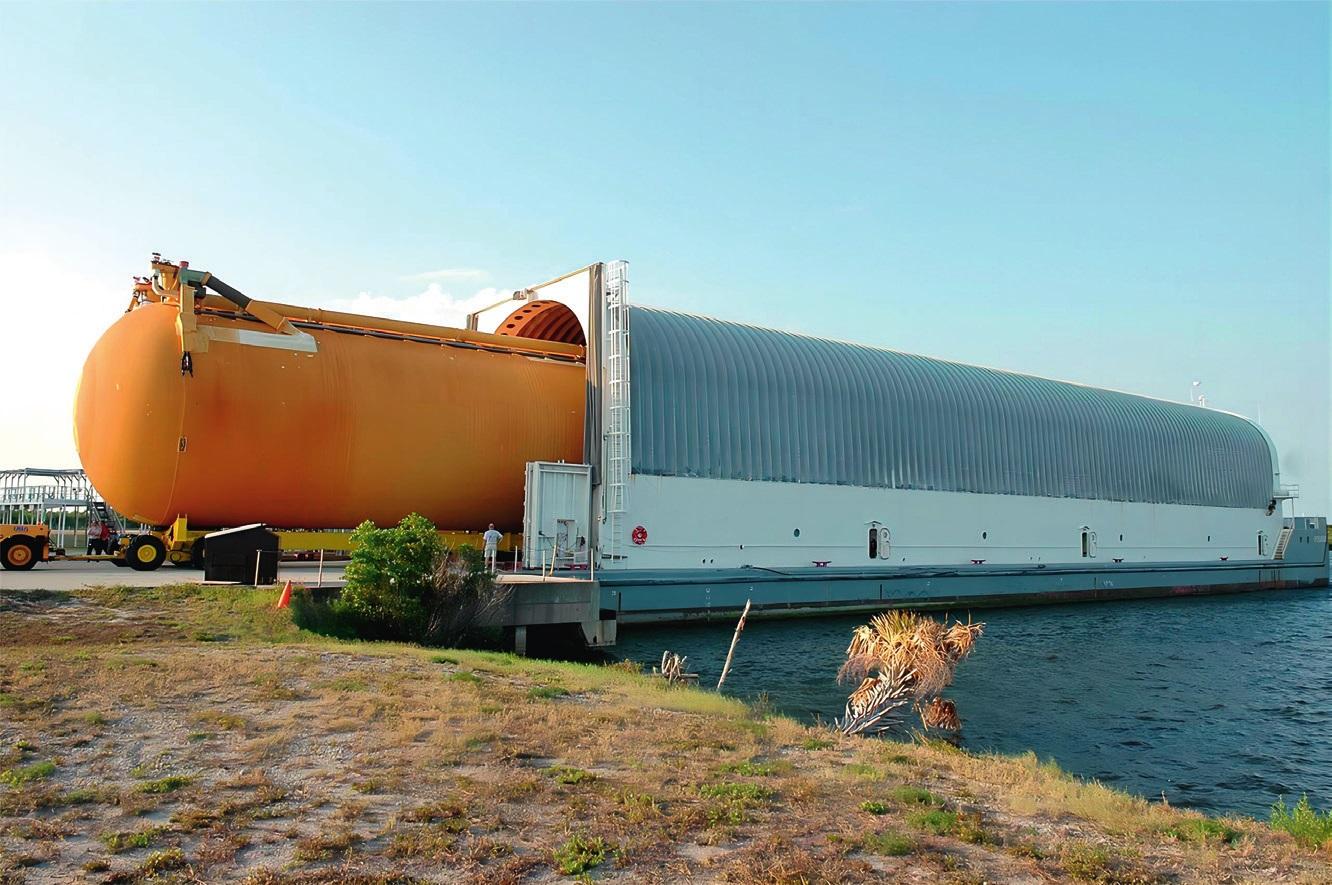 早在“阿波罗计划”时代,为了将马歇尔航天飞行中心制造的土星1号火箭部件运送至卡纳维拉尔角基地进行发射,美国宇航局决定使用驳船装载大型火箭部件,先沿着田纳西河、俄亥俄河和密西西比河航行,再穿越墨西哥湾,从大西洋沿岸北上,最终抵达卡角港口。