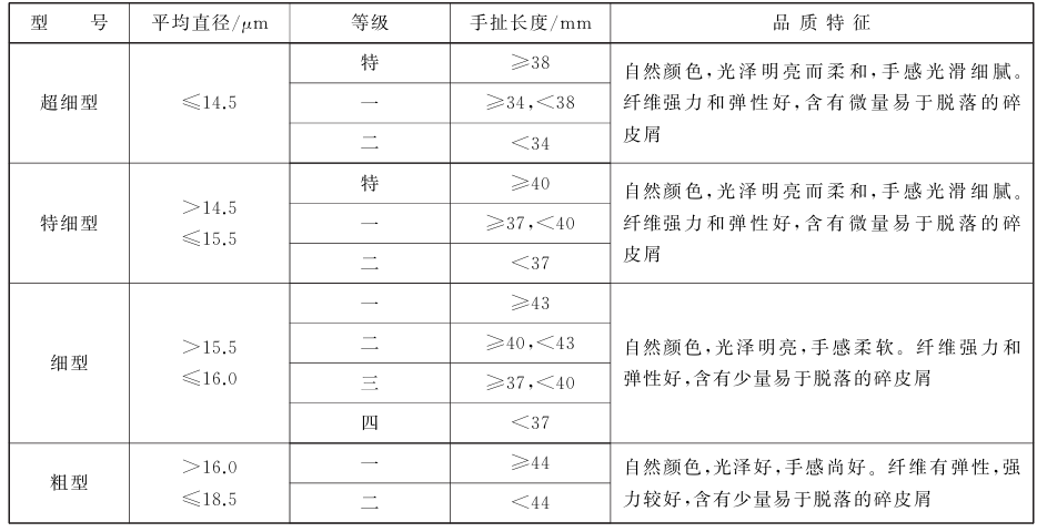 图 6 国标 GB18267—2013《山羊绒》中关于山羊绒等级技术的规定 资料来源:GB18267—2013,山羊绒[S].