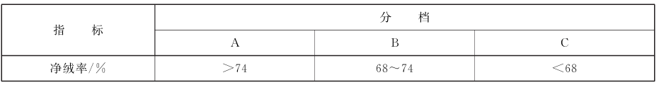 图 7 国标 GB18267—2013《山羊绒》中关于洗净绒净绒率分档的规定