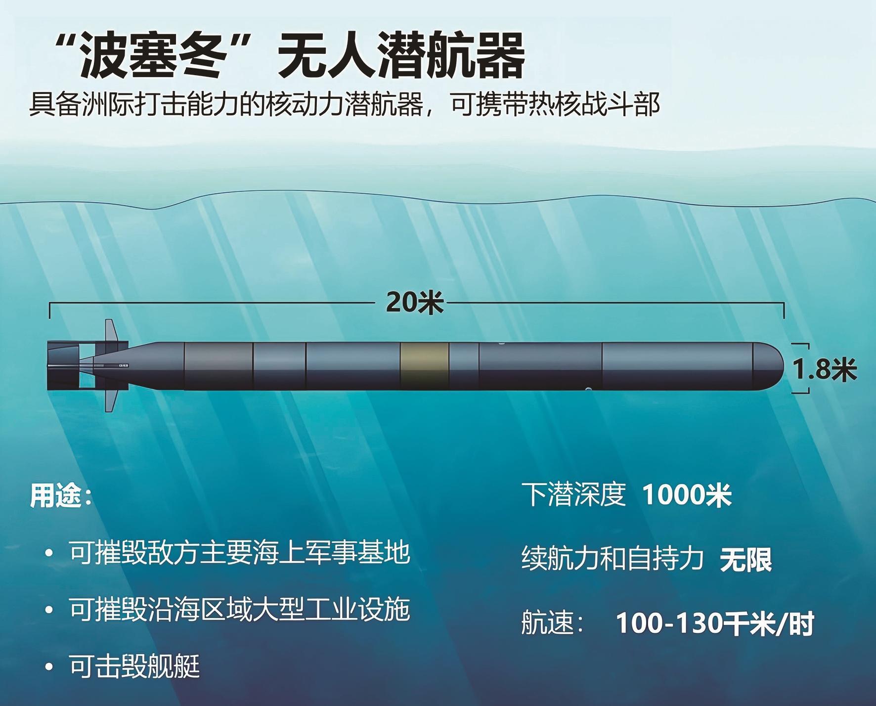 俄罗斯“波塞冬”核动力潜航器通过数百万次模拟对抗,学习隐蔽突防策略,能够在战场环境中自主绕过反潜网,在速度、隐蔽性和能源消耗等多目标间优化。例如,牺牲航速来降低噪声,从而避开主动声呐探测区域。