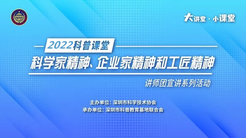 由深圳市科学技术协会、广西科学技术普及传播中心(小博士报)主办,深圳市科普教育基地联合会承办的“2022科普课堂”——科学家精神、企业家精神和工匠精神讲师团基层宣讲活动在深圳市科学馆举办科普讲座。此次宣讲活动旨在贯彻落实《全民科学素质行动规划纲要(2021—2035年)》,充分利用科普资源助推“双减”工作,以“送科普上门”服务提高公众终身学习能力,通过榜样力量加强未成年人思想道德建设。