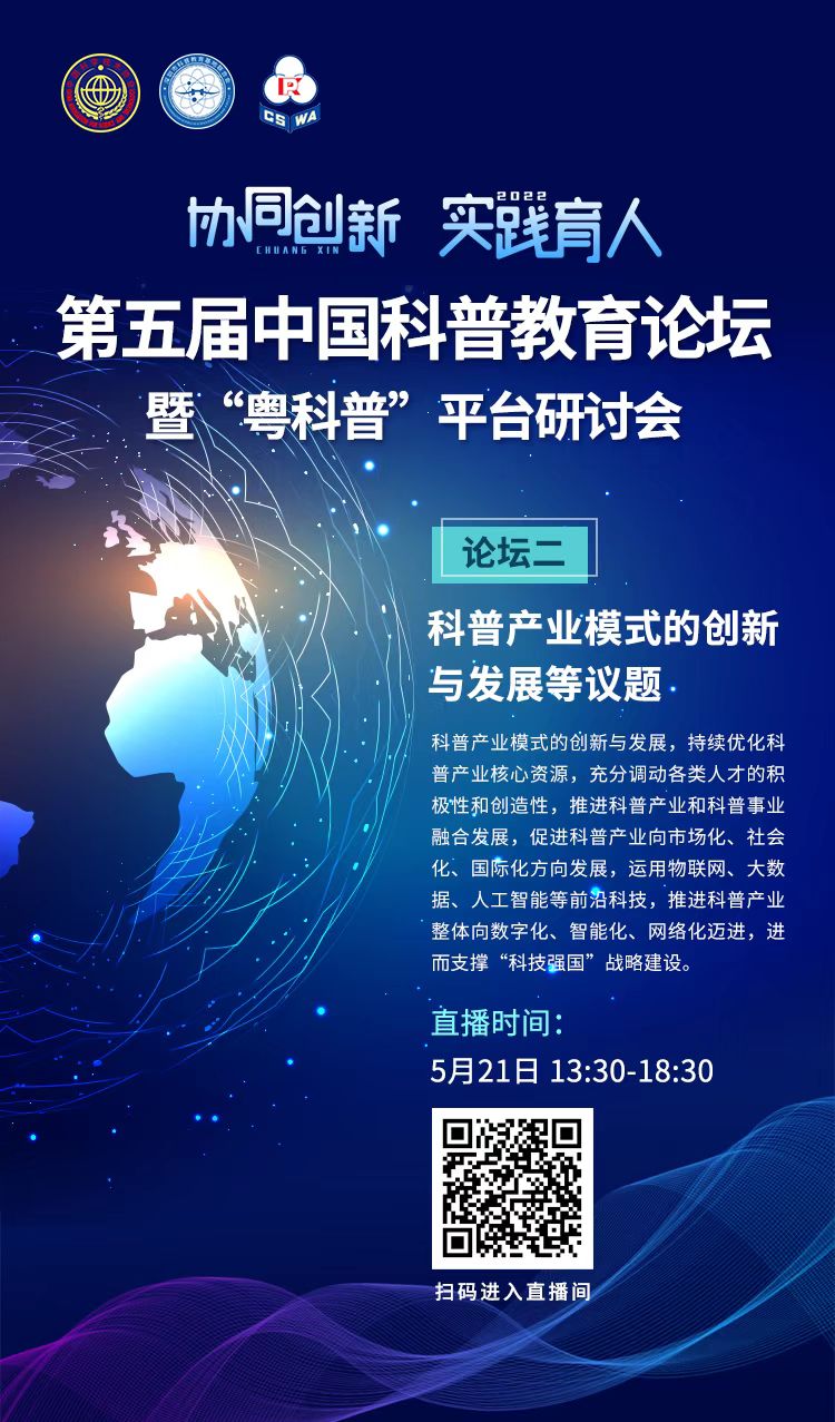 为加快推动科普产业的发展,2022年5月21日将在深圳市科学馆举办第五届中国科普教育论坛暨“粤科普”平台研讨会,积极引入和扶持一批优秀科普企业、龙头科普企业参与,积极搭建科普产业的研发、生产、销售、服务全产业链,为扶持科普产业发展提供示范。