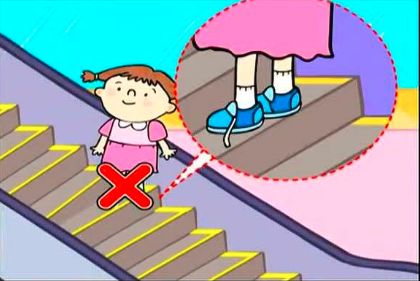 ④ 不要踩在黄色安全警示线以及两个梯级相连的部位,更不要在扶梯上走或跑,以免摔倒。