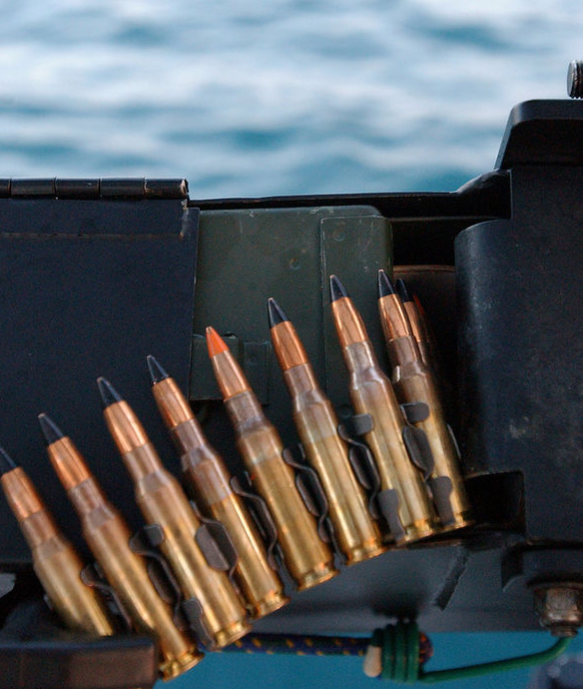 机枪弹链上的曳光弹(橙色弹头)来源丨维基百科