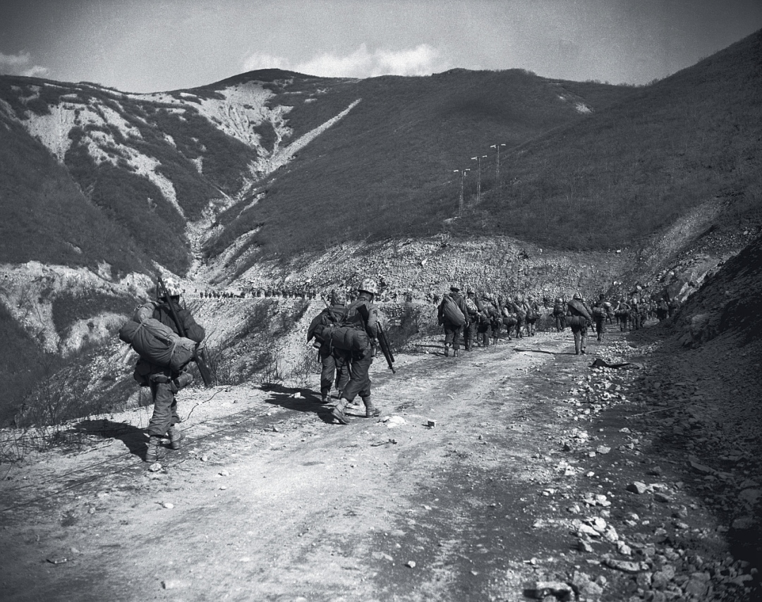 1950 年12月,从下碣隅里撤退的美海军陆战队第1师