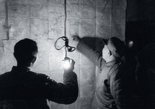 1950年,志愿军第9兵团司令员宋时轮(右)指挥部队推进到长津湖。经过紧张的部署,11月26日,第9兵团已经秘密埋伏在长津湖地区