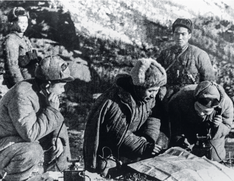 1950年11月27日,志愿军某部指挥员在长津湖战役中指挥作战。志愿军的穿插部队多会控制村落外围和制高地,用火力或观察哨控制山顶,同时还会积极地组织小部队进行快准狠地反击