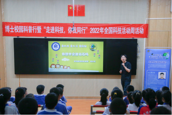 5月26日上午,在丹堤实验学校,中科院深圳先进研究院副研究员周小龙博士为同学们解读钻石的秘密。课程从“钻石从哪里来?你该如何造钻石?钻石的用途和家族”三个方面入手,老师结合视频、图片和水晶石等形式展示,深入浅出地讲述钻石的前世今生,还适当引入钻石整个碳材料家族体系的科普知识。