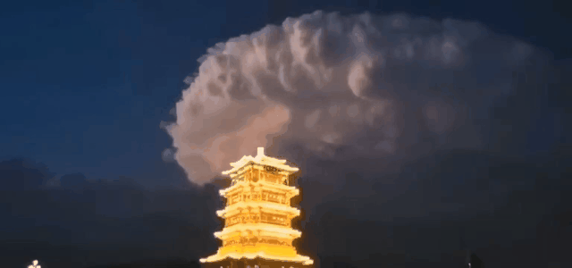 @中国天气发微博 称这是“巨大的雷雨云砧”,所以,只是一个自然现象,和所谓的“渡劫”没有关系,更无关外星人、怪兽。