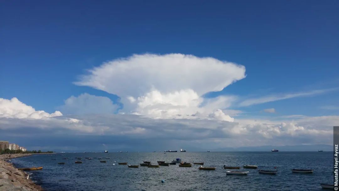 它是由于积雨云中强烈上升气流到达对流层顶后,受到对流层顶(平流层下)强烈的水平气流作用而不能继续上升,从而向四周快速扩散,在对流层顶的阻挡下和高空风切变作用下,云顶呈砧状,形成了云砧。