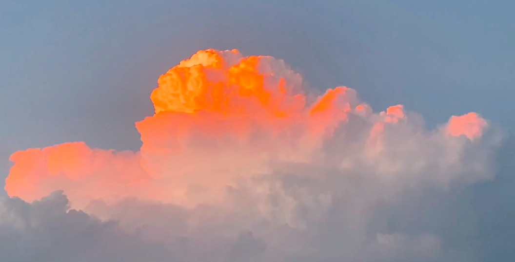 由于对流层顶温度很低,上升气流中凝结的水汽形成冰晶化丝缕结构,冰晶随风扩散,所以一般情况下云砧看上去是白色透光的。