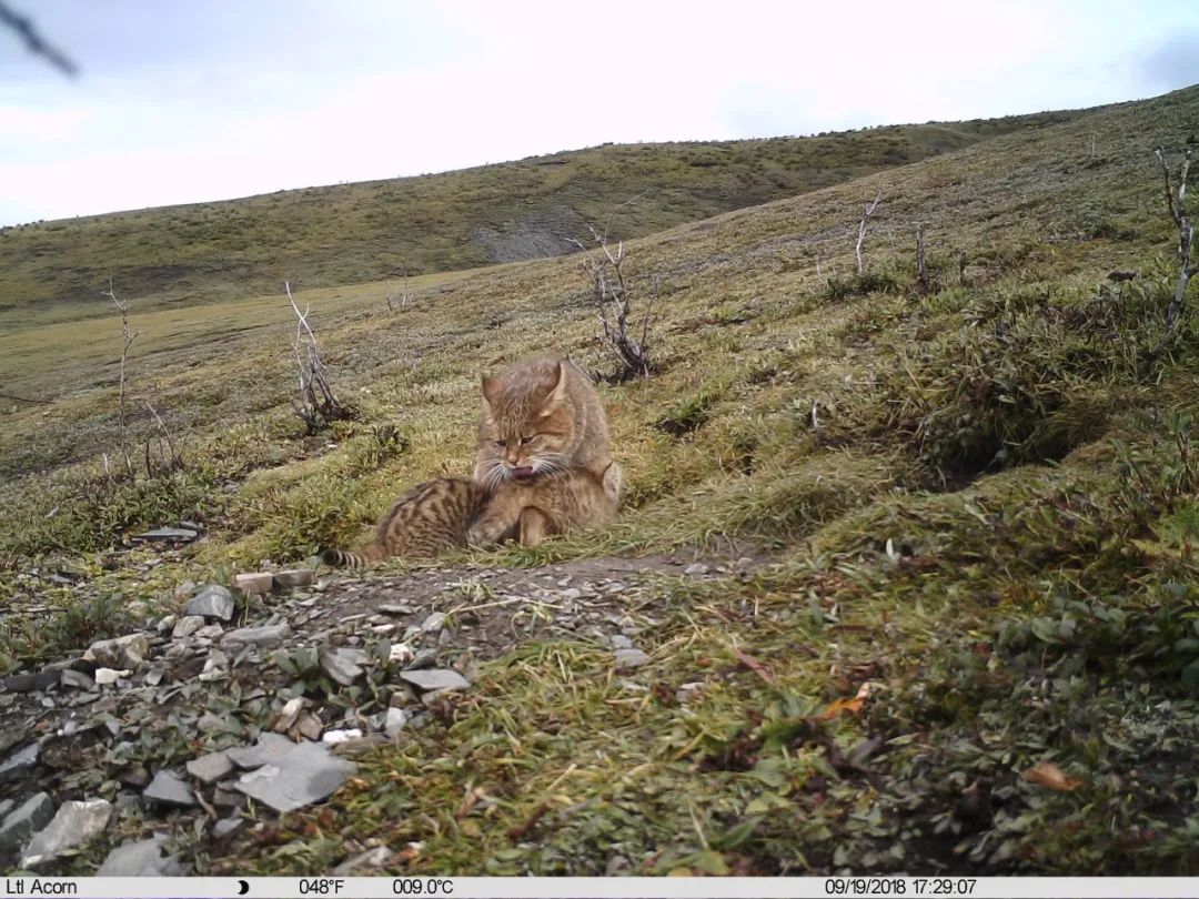 在整个对于繁殖期的监测中,我们并不意外地记录到许多次猫妈妈给小猫喂奶、带鼠兔回来等有趣的影像。