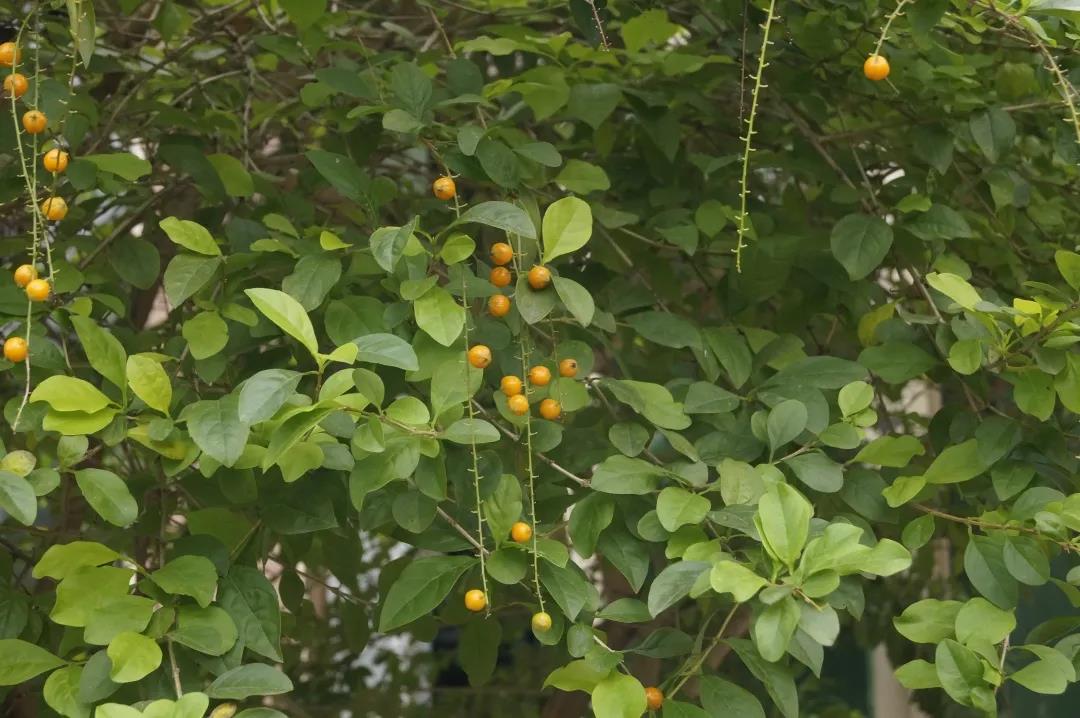 马鞭草科的假连翘Duranta erecta,常见于华南绿化带。图片:含笑
