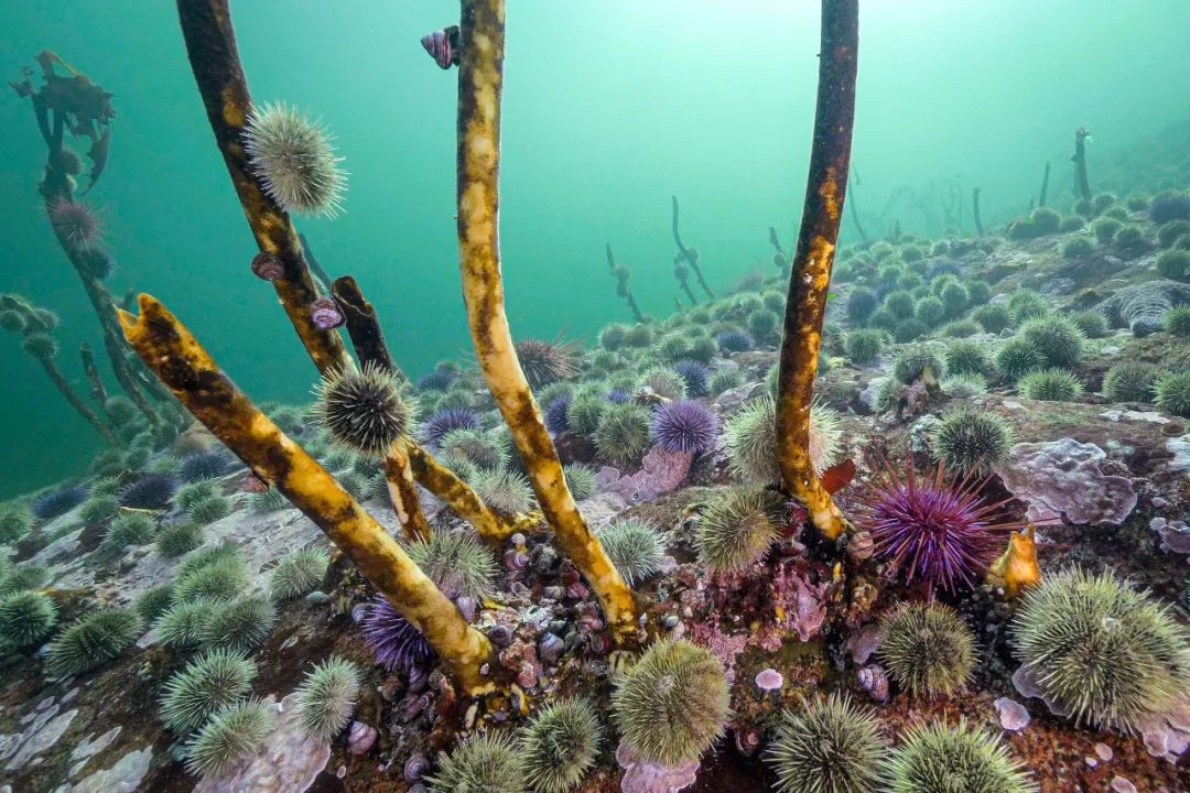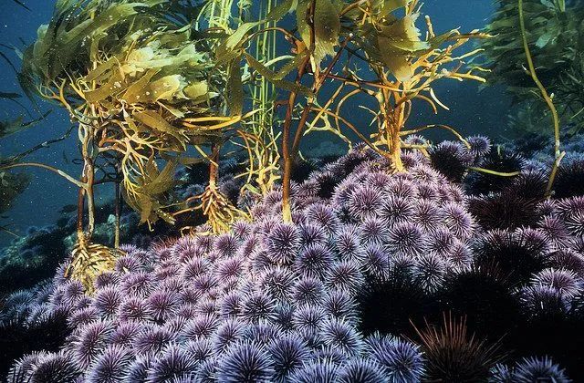 海藻森林最大的自然“天敌”就是海胆。海胆是嗜吃海藻的无脊椎动物,而海獭可以控制海胆的数量。