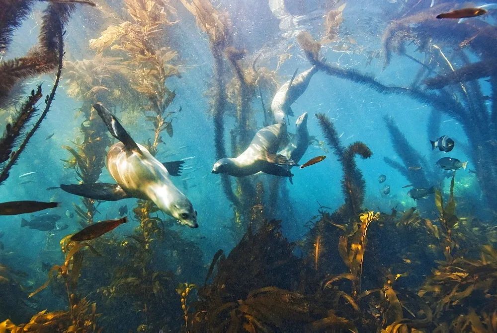 此外,全球还存在其他经常被淹没的海藻森林,比如英国、加拿大、新西兰,澳大利亚,甚至南非和南美洲,虽然都是海藻森林,但形态品种可能差距很大,都有其独有的特色,而生活在其中的生物也完全不同。大到海狮、海豹,小到海螺、蜗牛。