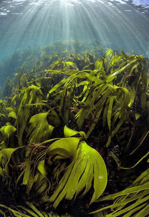 水下森林,就是海藻森林( Kelp forests),这种高密度的海藻分布区,几乎覆盖了全球约25%的海岸线。它们是地球上生产力最高,最具活力的生态系统之一。而与之高大挺拔的海藻相对的那些低矮海藻区,这被称为海藻床( kelp beds)。