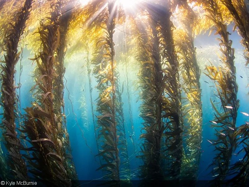 海藻森林在生长时会吸收大量的二氧化碳。研究发现,与陆地森林相比,每英亩海藻森林可从大气中吸收多达20~25倍的二氧化碳。