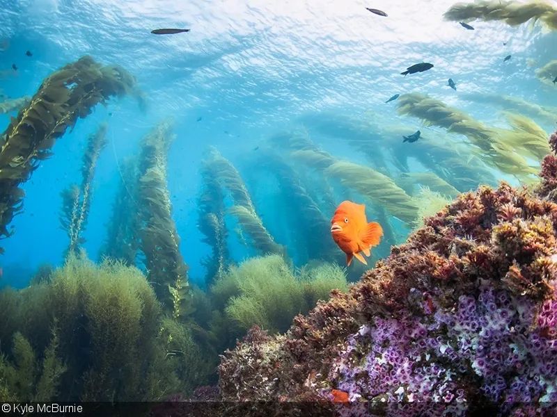 海藻森林被认为地球上最丰富多彩、最具活力的生态系统之一。它就像一个巨大的建筑群,为大大小小的生物们提供了安全的庇护所,也吸引许多生物前来觅食与繁殖。