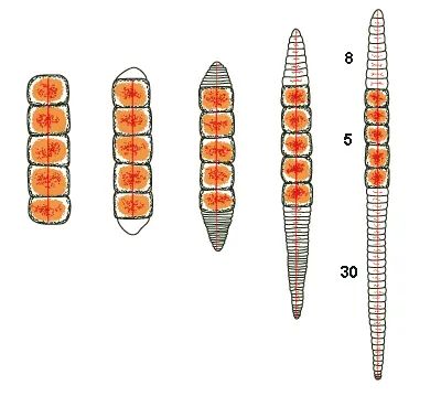 夹杂带丝蚓(Lumbriculus variegatus)被切头去尾后完成再生,图片来源爱荷华大学网