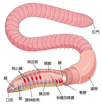 蚯蚓解剖图,图片来源台湾科学人杂志网