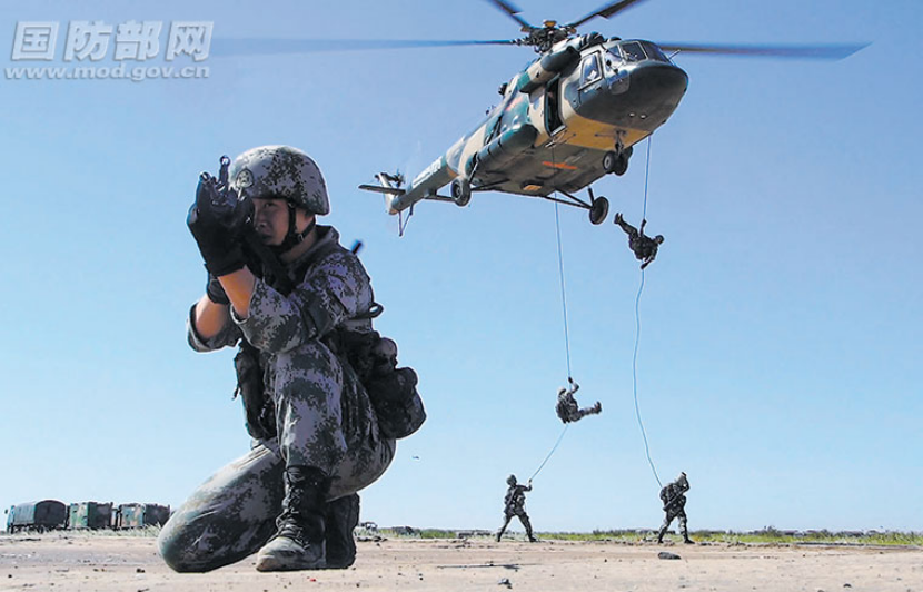 最后,我们来关注下陆军航空兵。陆军航空兵是陆军中以直升机为基本装备,主要在地面作战中执行空中进攻、空中机动、空中保障等作战任务的兵种。陆军实现“飞起来”的梦想,依靠的是直升机等旋转翼飞机或无人机等特定的飞机,在限定的空域内快速行动。陆军航空兵主要职责是为地面作战服务,在近地面的特定的低空范围内执行作战和保障任务,使得陆军具有快速机动、全域作战的能力。这里大家要注意,虽然我国的陆军航空兵的主战装备是直升机,并不是说歼击机、强击机和轰炸机等固定翼飞机不是陆军航空兵的“菜”。陆军立体投送演习(图片来源:国防部网)