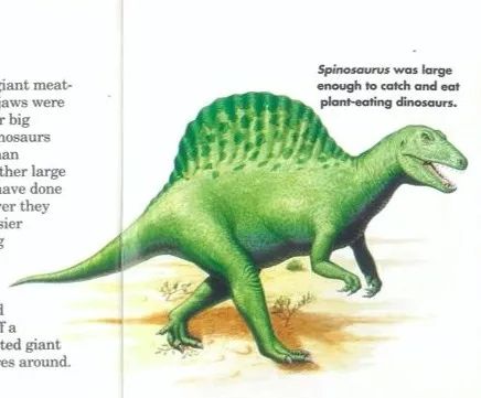 而且受当时对恐龙的认知所限,兽脚类恐龙都是两足站立,尾巴拖地的“袋鼠”站姿,第一代的棘龙形象就这样诞生了。而且不知为何,棘龙那张狭长的“鳄鱼嘴”的特征也没有表现出来。